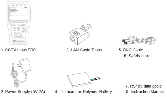 The CCTV tester PRO is developed for the On-Site installation and maintenance of video monitoring system. It can be used for displaying video, controlling PTZ, generating images, capturing data of RS485 and testing LAN cable etc. Its functions, easy operation, and portability makes it simple for the CCTV technician to install and maintain CCTV system, improving work efficiency and get the labor cost down.
